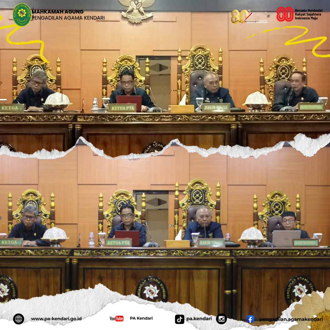 Ketua Pengadilan Tinggi Agama (PTA) Kendari, Bapak Drs. H. Damsir, S.H., M.H., memimpin langsung kegiatan Ekspos hasil pengawasan sekaligus Pembinaan di Pengadilan Agama Kendari pada Rabu (19/11/2025). Rapat ekspos ini dilaksanakan di Ruang Sidang Cakra dan dihadiri oleh Ketua, Wakil Ketua, Para Hakim, dan seluruh aparatur Pengadilan Agama Kendari, serta tim pengawas dari PTA Kendari. Kegiatan ini menjadi forum penting untuk evaluasi, diskusi, dan perumusan langkah perbaikan guna terus meningkatkan kualitas pelayanan dan kinerja di lingkungan peradilan agama.