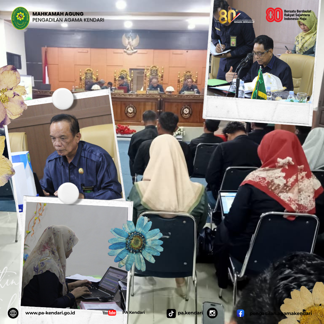 Ketua Pengadilan Tinggi Agama (PTA) Kendari, Bapak Drs. H. Damsir, S.H., M.H., memimpin langsung kegiatan Ekspos hasil pengawasan sekaligus Pembinaan di Pengadilan Agama Kendari pada Rabu (19/11/2025). Rapat ekspos ini dilaksanakan di Ruang Sidang Cakra dan dihadiri oleh Ketua, Wakil Ketua, Para Hakim, dan seluruh aparatur Pengadilan Agama Kendari, serta tim pengawas dari PTA Kendari. Kegiatan ini menjadi forum penting untuk evaluasi, diskusi, dan perumusan langkah perbaikan guna terus meningkatkan kualitas pelayanan dan kinerja di lingkungan peradilan agama.